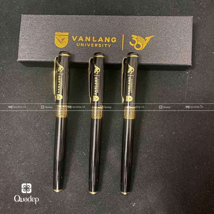 Bút ký kim loại khắc logo khoen vàng quadep