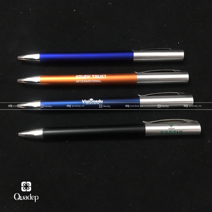 Bút kim loại in logo là những chiếc bút bi được làm từ chất liệu kim loại. Trên thân bút được in logo hoặc tên thương hiệu của công ty, tổ chức, hoặc sự kiện. Đây là lựa chọn quảng cáo cao cấp và sang trọng hơn so với bút nhựa. Mang lại cảm giác bền bỉ và chuyên nghiệp hơn.