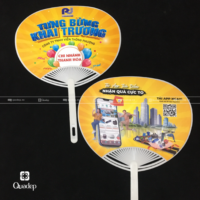 Quạt nhựa cầm tay có thể in ấn quảng cáo theo yêu cầu và có bề mặt in ấn lớn, nên quạt nhựa cầm tay có thể truyền tải được nhiều thông tin hơn. Nội dung in ấn trên quạt nhựa không giới hạn về màu sắc, bạn có thể in ấn nhiều hình ảnh, người xem mãn nhãn hơn về mặt thiết kế và có thể hình dung rõ ràng hơn về sản phẩm, dịch vụ doanh nghiệp.